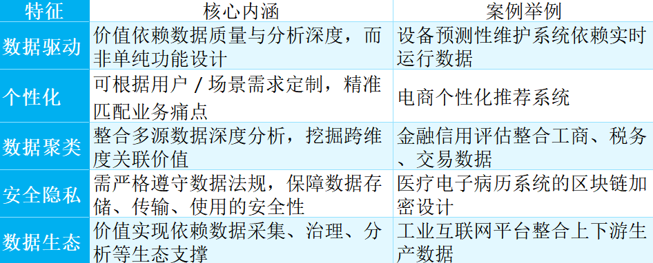 在此基础上,数据产品区别于传统软件产品的核心特征逐渐清晰:数据驱动、场景适配、安全合规。这些特征不仅决定了其技术架构,也直接影响其后续的产品形态与价值实现方式。