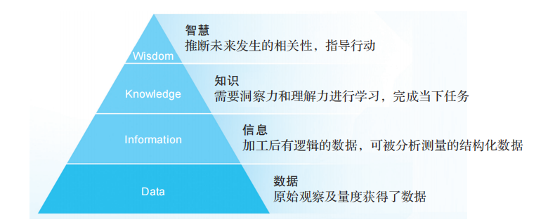 有了分类框架,我们还需理解数据产品如何“越长越值钱”。这一过程可借助经典的DIKW模型(Data-Information-Knowledge-Wisdom)加以阐释:
