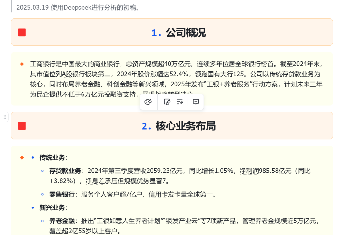 以上是Deepseek用1分钟完成的初稿。 以下是权威渠道的公告数据,核实了传统业务的利润和营收数据,还是比较准确的。有不准确的,查实了更新就可以。这样人机合作的分析方式,比原来都靠人力手工处理还是快了很多的。