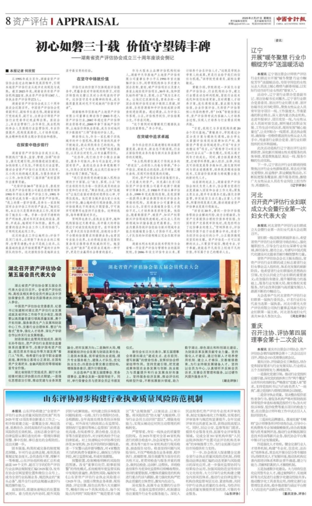 《中国会计报》专题报道——《山东评协初步构建行业执业质量风险防范机制》